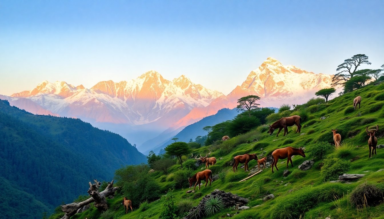 La vegetación de Nepal es extraordinaria, con una gama de biomas que van desde bosques tropicales húmedos hasta praderas alpinas. Esta diversidad vegetal no solo soporta a la fauna del Himalaya, sino que también juega un papel vital en la captura de carbono y la prevención de la erosión del suelo.