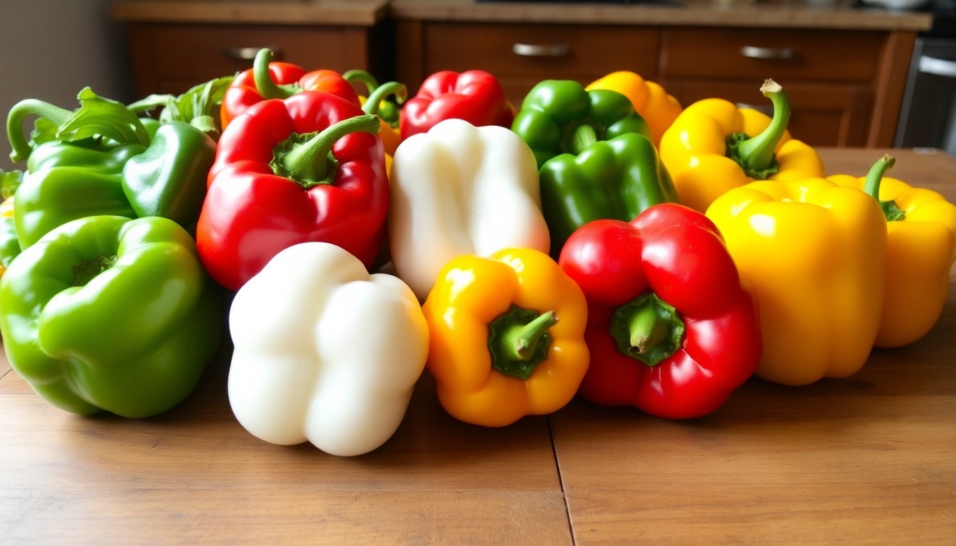El pimiento blanco es menos común pero igualmente nutritivo. Tiene un sabor suave y menos dulce que sus contrapartes de colores vibrantes. El término morrón se utiliza frecuentemente en algunas regiones para referirse al pimiento grande y carnoso.